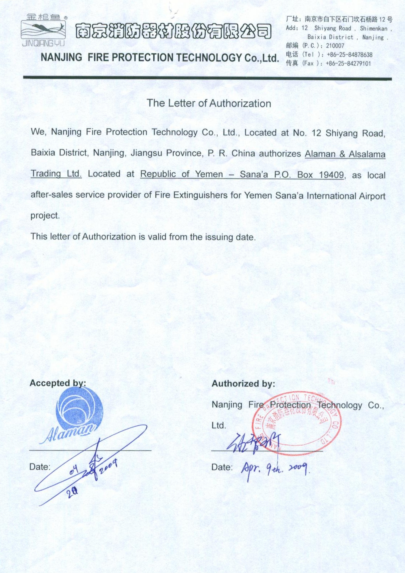 توريد وتركيب وصيانة جميع انظمة ومعدات مكافحة الحرائق في الجمهورية اليمينة