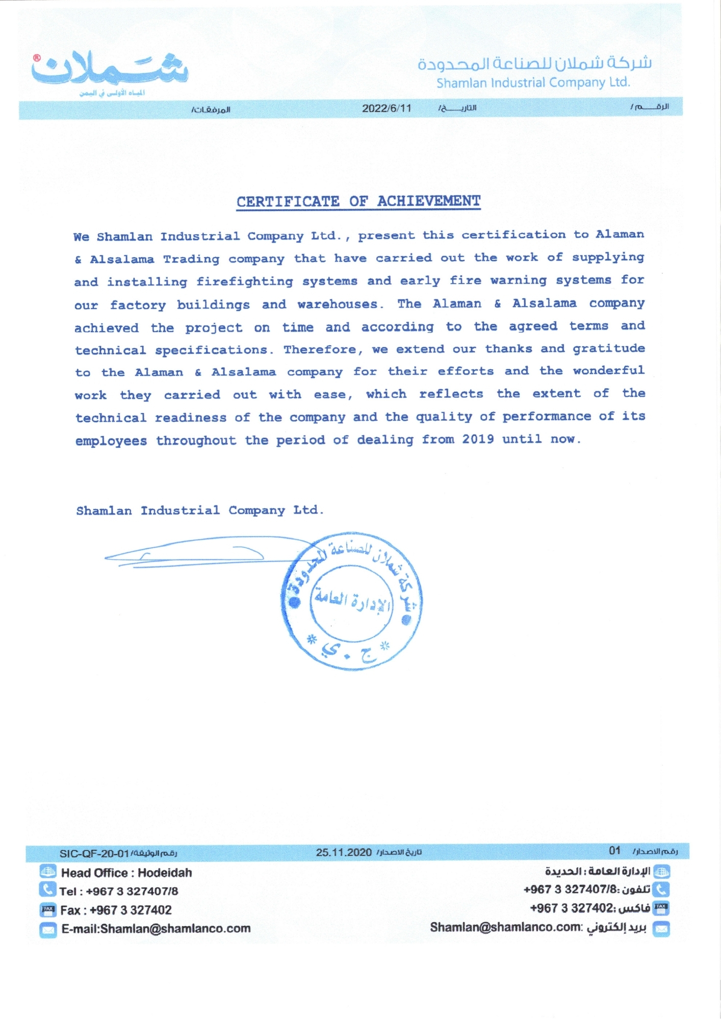 نعتبر من أوائل الشركات في اليمن في مجال معدات السلامة ومكافحة الحرائق، بما في ذلك استيراد وتركيب أنظمة الأمن والسلامة، وأعمال الصيانة